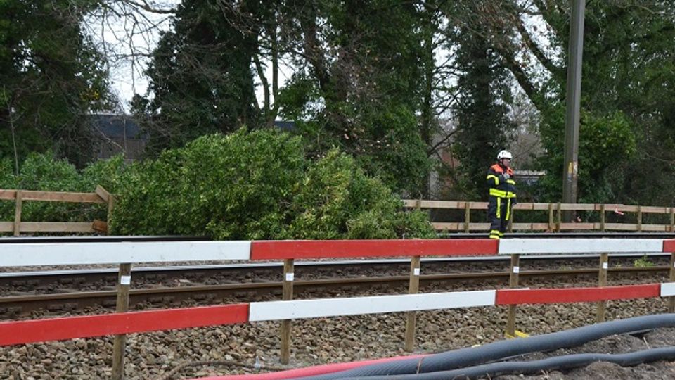 Tussen Bergen op Zoom en Roosendaal reden woensdagmiddag geen treinen. Door de storm was er een boom op het spoor gevallen.