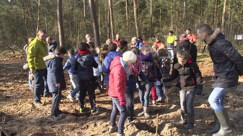 Ook Bergen op Zoom deed mee: kinderen van groep 6 van basisschool de Krabbenkooi stonden woensdagmorgen vroeg in het bos om bomen te planten op het landgoed Lievensberg.
