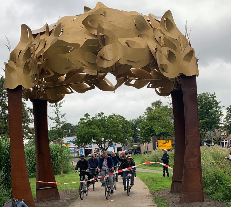 “Een plek uit duizenden zou ik zeggen. Want waar komt deze poort beter tot zijn recht dan hier: een fraaie plek in het park op een mooie zichtlocatie waar dagelijks duizenden mensen een blik op werpen,” zegt wethouder Van der Velden. “En het mooie is, de Bospoort dient hier als een echte poort voor de vele fietsers.”