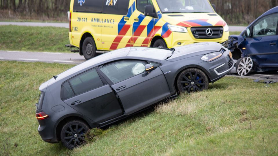 Een bestelbus en een auto zijn maandagmiddag frontaal op elkaar gebotst op het Laageinde bij Halsteren. Volgens getuigen zou de bestuurder van het bestelbusje de binnenbocht hebben genomen, en zo in botsing zijn gekomen met de tegenligger.