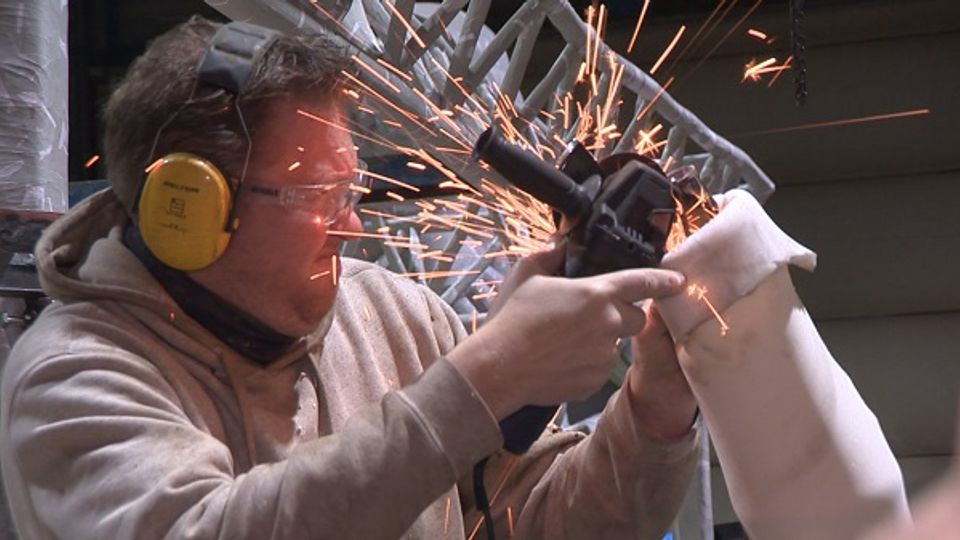 Voor het ontwerp van de wagens proberen de bouwers altijd een combinatie te maken van de verschillende motto’s. “We baseren eigenlijk een beetje de wagen op Nispen-Roosendaal. En dit jaar is dat feest: 55 jaar! En het motto is in Roosendaal “Draai ‘t mar om’, maar ja, dat gaat niet. Het blijft 55,” zegt hij met een brede grijns en stralende ogen.