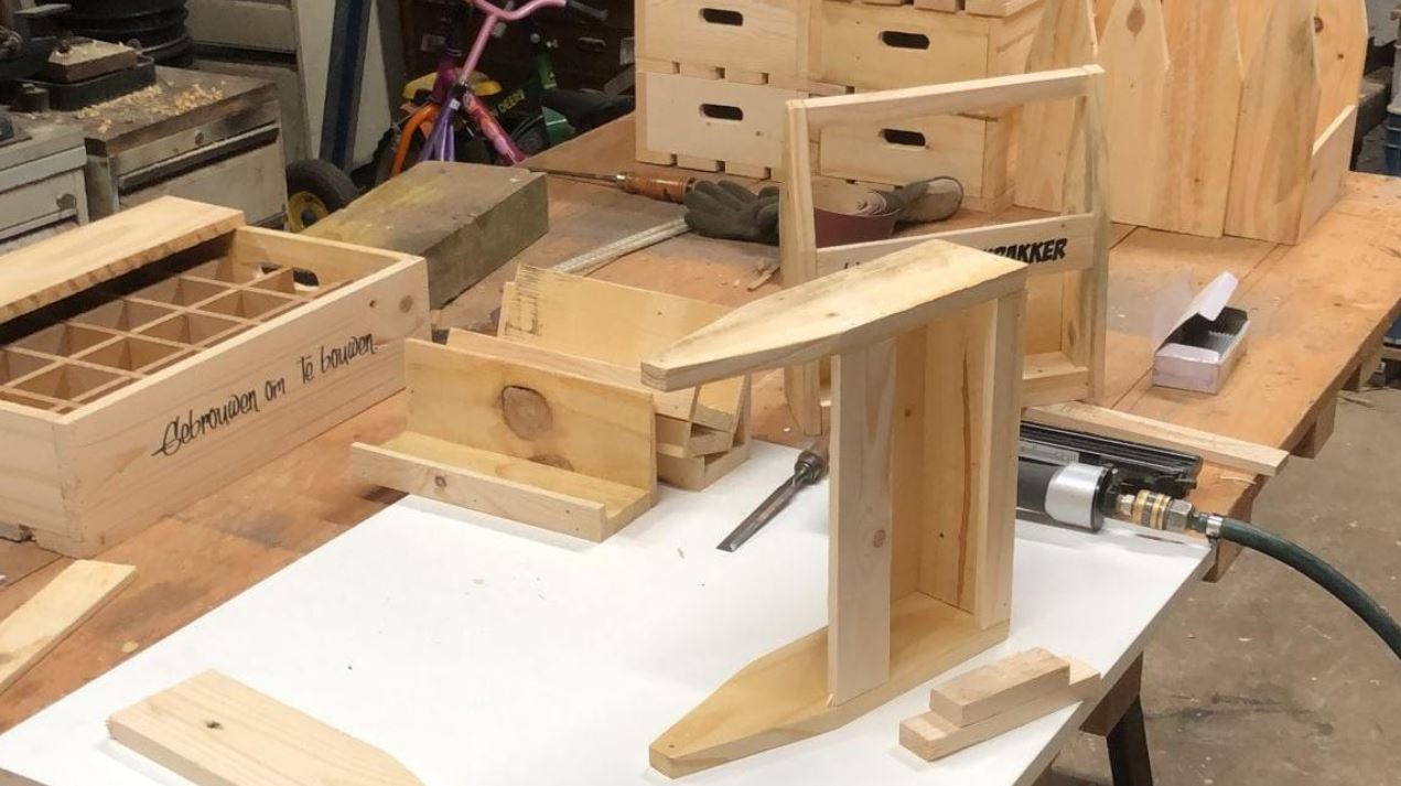 En het bloed kruipt waar het niet gaan kan bij de creatievelingen. “We hebben een grote pop in de vorm van een bierfles gebouwd. En nu zijn we druk bezig om houten kistjes in elkaar te timmeren, waar de flesjes straks in kunnen.”