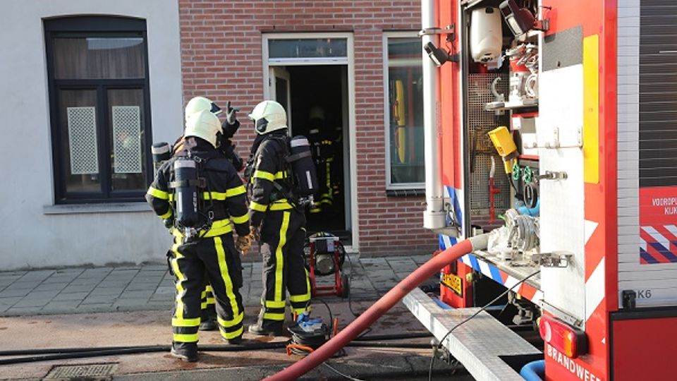 De brandweer rukte uit met twee voertuigen en wist de brand te blussen. De oorzaak van de brand is niet bekend, maar is vermoedelijk ontstaan in de keuken. De straat is enige tijd afgesloten geweest voor verkeer. Foto: Christian Traets / SQ Vision