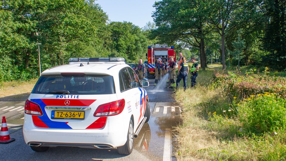 Brandweer ingezet om wegdek te koelen dat door hitte omhoog komt