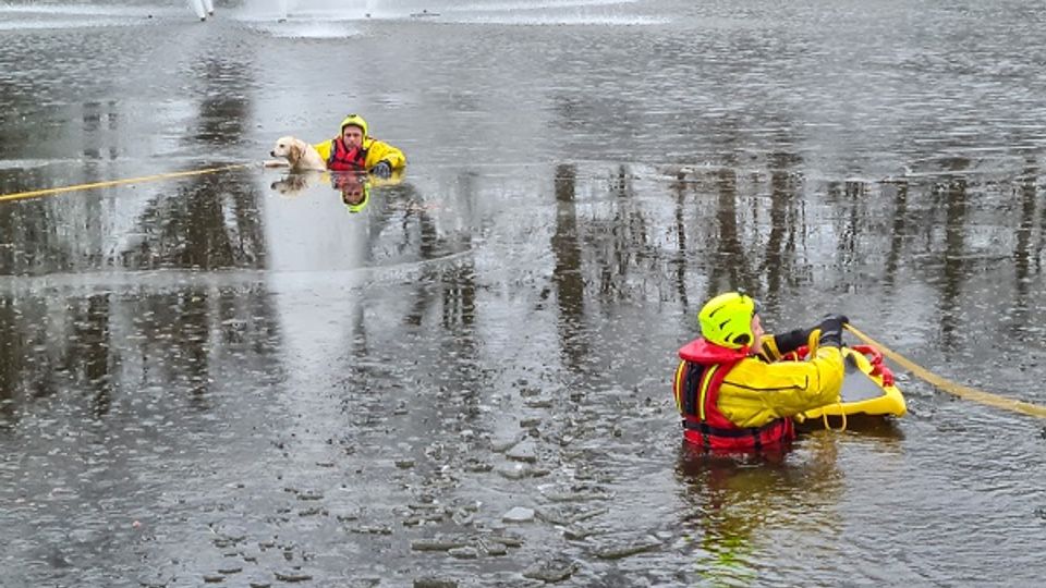 De brandweer kreeg tegen half elf de melding binnen. Brandweermensen in water- en koubestendige kleding moesten de vijver in om de hond uit het water te halen. Op een plek waar nog wat steviger ijs lag, kon het dier daarna op een slee worden gezet en naar de kant toe worden getrokken. Voor zover bekend is de hond niet gewond geraakt tijdens het ijzige avontuur.