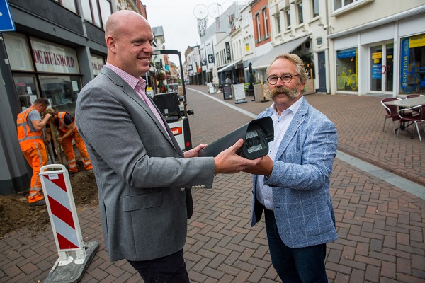 Martin van Beurden overhandigt één van de vier camera’s aan wethouder Cees Lok © Christian Traets Fotografie