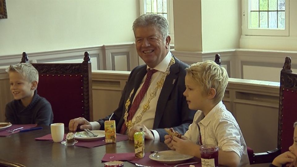 Burgemeester Petter ontbijt met kinderen in stadhuis