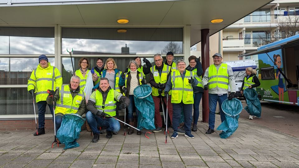 Een van de teams die zaterdagmiddag klaar stonden om de wijk in te trekken voor de landelijke Opschoondag.