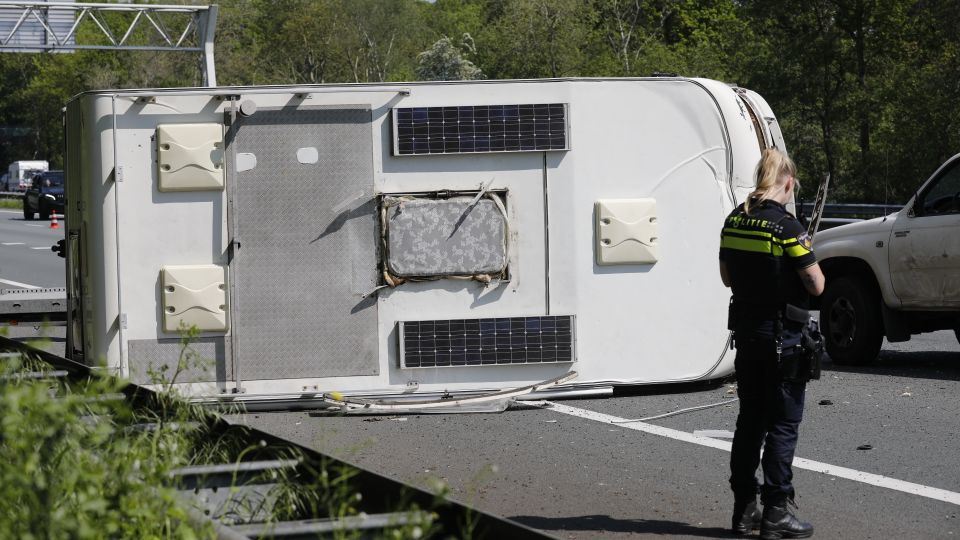 De camper stond op een aanhanger achter een pick-up. Toen de aanhanger ging scharen, viel de camper er af. De kampeerwagen kwam op z’n kant op de weg terecht. Brandweer en ambulance werden gewaarschuwd, maar de bestuurder van de pick-up bleef ongedeerd.