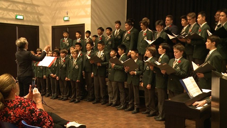 Canadese leerlingen zingen in Den Enghel