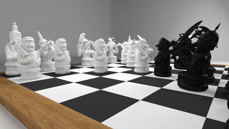 Dat de Peperbus de toren moest zijn en de Prins de koning, was snel besloten. De Gròòtste Boer is uiteindelijk verwerkt tot een aantal pionnen, Wana tot koningin en de Nar tot loper.