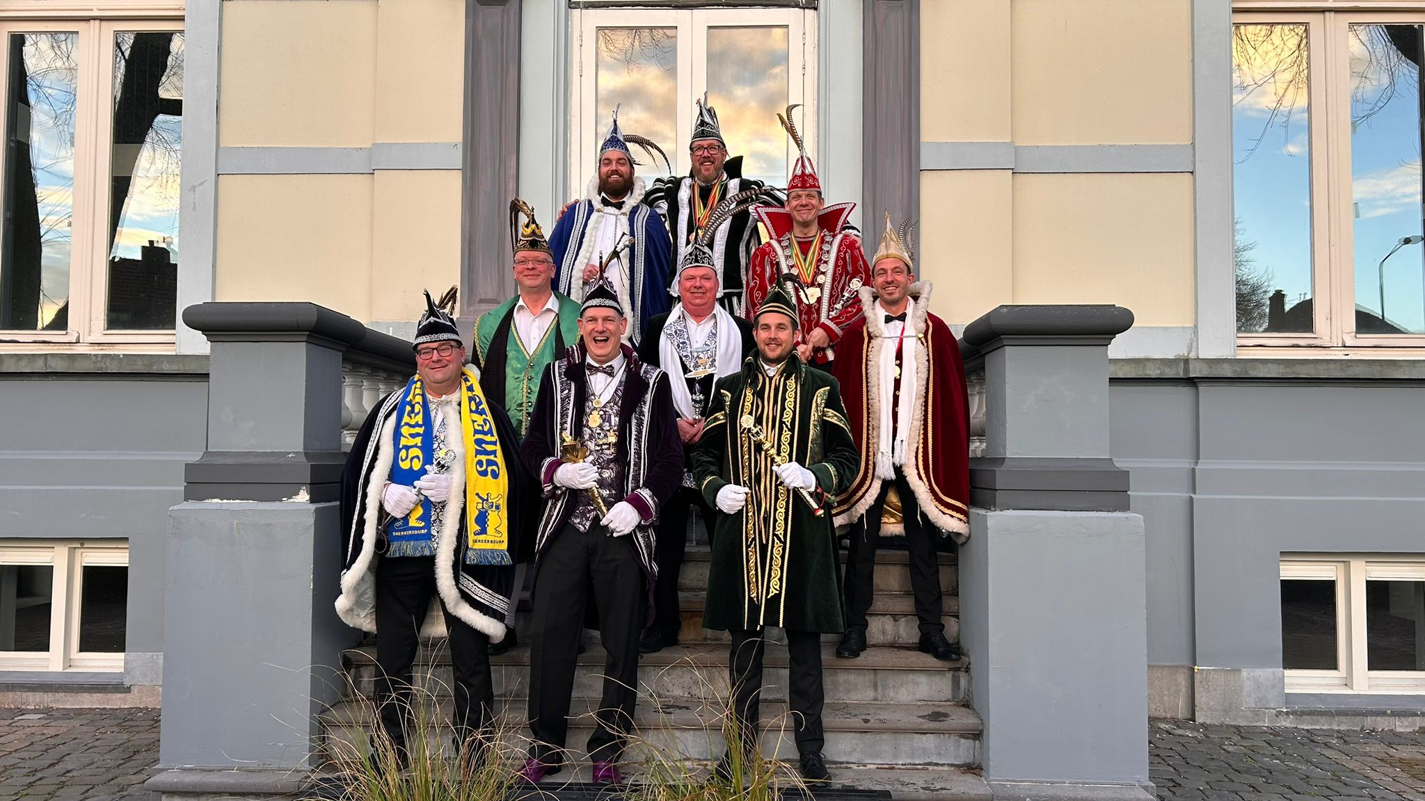 Een bont gezelschap stapt zaterdagmiddag uit een grote tourbus bij het treinstation in Zevenbergen. De hele middag is Prins Koen I van Zeuvebultelaand al samen met zijn gevolg op pad om álle andere protocollen van de carnavalsstichtingen binnen de gemeente Moerdijk op te halen. Allemaal speciaal vanwege het jaarlijkse Westhoekfeest.