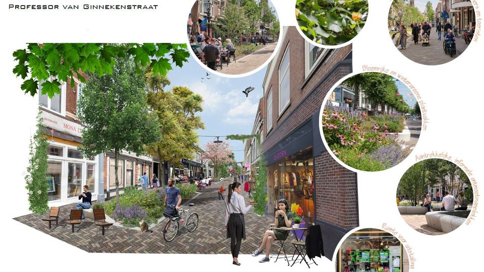 Een belangrijk punt uit de verkeersvisie is het (gedeeltelijk) autovrij maken van het winkelgebied Fenkelstraat/Professor van Ginnekenstraat. “Op die manier komt er meer ruimte voor groen.” Een impressietekening laat opties als ruimte voor uitstalling, bloemrijke plantvakken en informele ontmoetingsplaatsen zien. “De herinrichting van dit gebied is voor ons een speerpunt voor 2025.” Door het gebied autovrij te maken verdwijnen er negen parkeerplaatsen. “Maar die komen op een andere plek weer terug.”