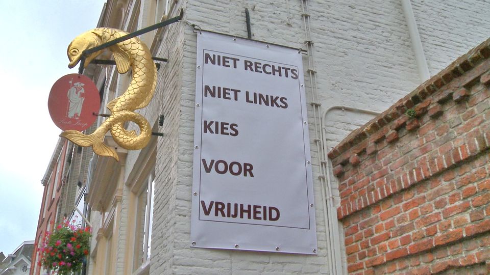 Sinds kort hangen er in de binnenstad van Bergen op Zoom spandoeken boven de straat met daarop de tekst: “Loop rechts op de straat, denk ook aan anderen”. De spandoeken zijn in opdracht van ondernemersvereniging Sterck opgehangen, om winkelend publiek te wijzen op de corona-maatregelen. Eén van die spandoeken hangt aan de woning van Jolande Vermaas. Zij besloot om zelf ook een spandoek aan haar huis op te hangen. Op haar spandoek staat: “Niet rechts, niet links, kies voor vrijheid”.