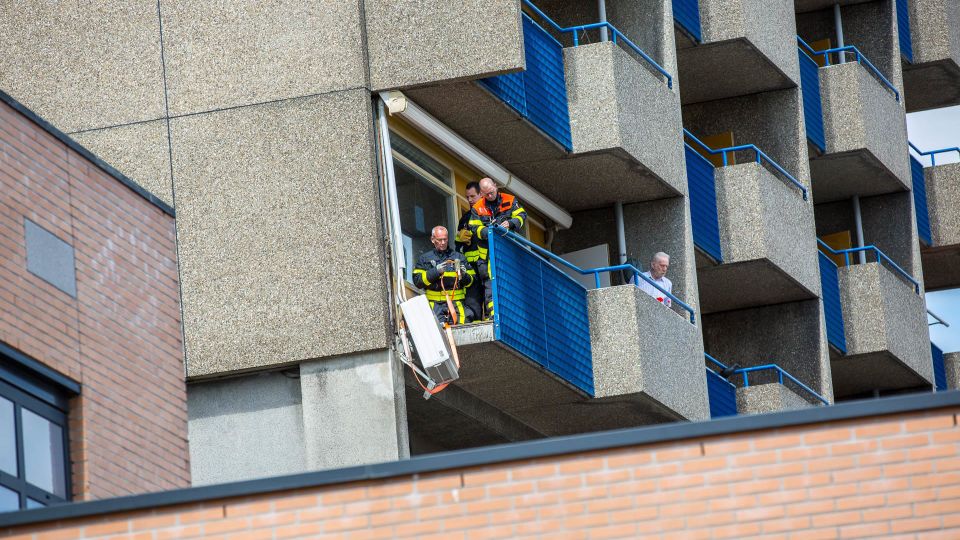 Een betonnen deel van een balkon van een flat aan de Laan van Brabant in Roosendaal is zondagmiddag naar beneden gevallen.