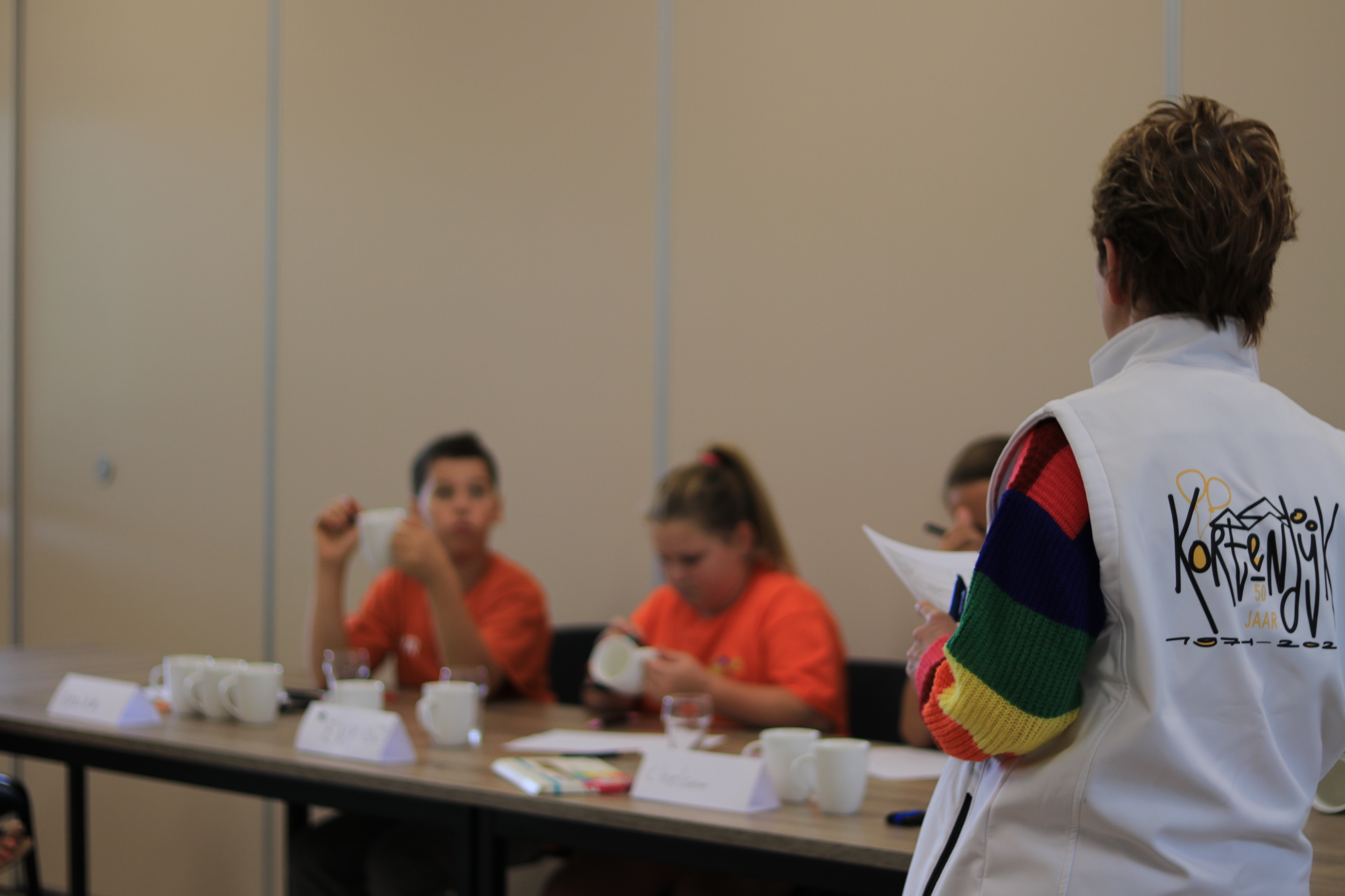 In wijkhuis ’t Dijksteeke komen Amir, Chelsea, Evy, Eray en Yassim bij elkaar voor een laatste officiële vergadering. Samen met Karin Goderie van bewonersplatform Kortendijk spreken ze de laatste stand van zaken door. Er staan al een hoop activiteiten gepland. “Kinderen kunnen graffiti spuiten, lasergamen en kaarsen maken”, vertelt Amir. Hij is heel erg trots dat het graffiti spuiten is gelukt, want dat was nog even spannend. “Het was een fifty-fifty procent kans. Het lijkt mij superleuk om te doen. Ik heb het nog nooit gedaan”, voegt hij enthousiast toe. Medeorganisator Evy sluit zich daarbij aan. “Ik heb het al eens gedaan en dat was superleuk”, vertelt ze.