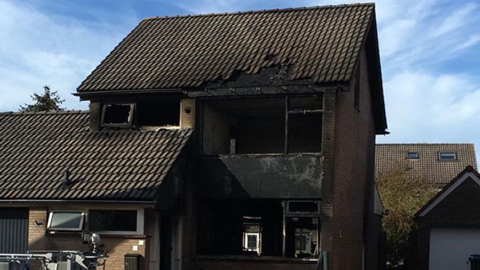 De woning aan de Keizerstraat in Putte brandde vrijdagmiddag volledig uit © Veiligheidsregio MWB