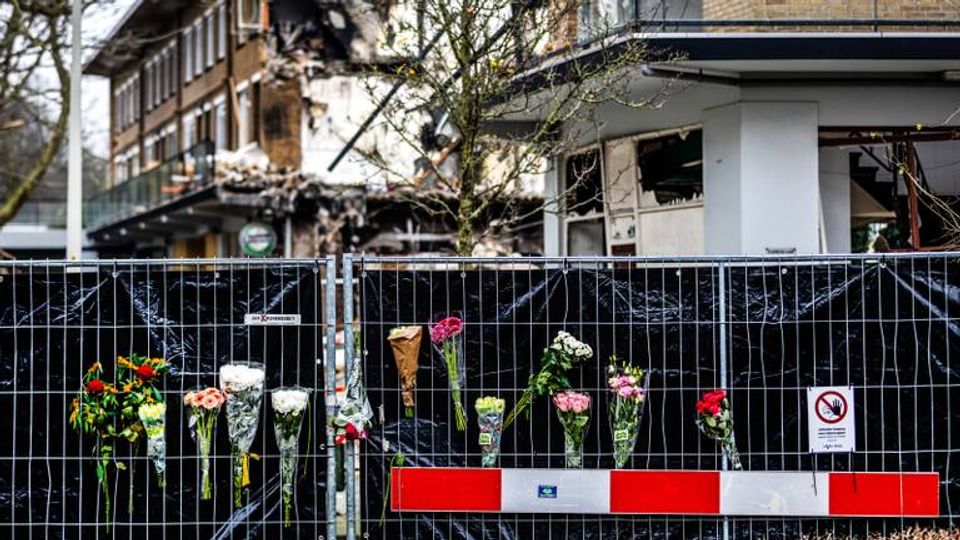 Bloemen op de plek van de explosie. (Foto: ANP, via Omroep Brabant)