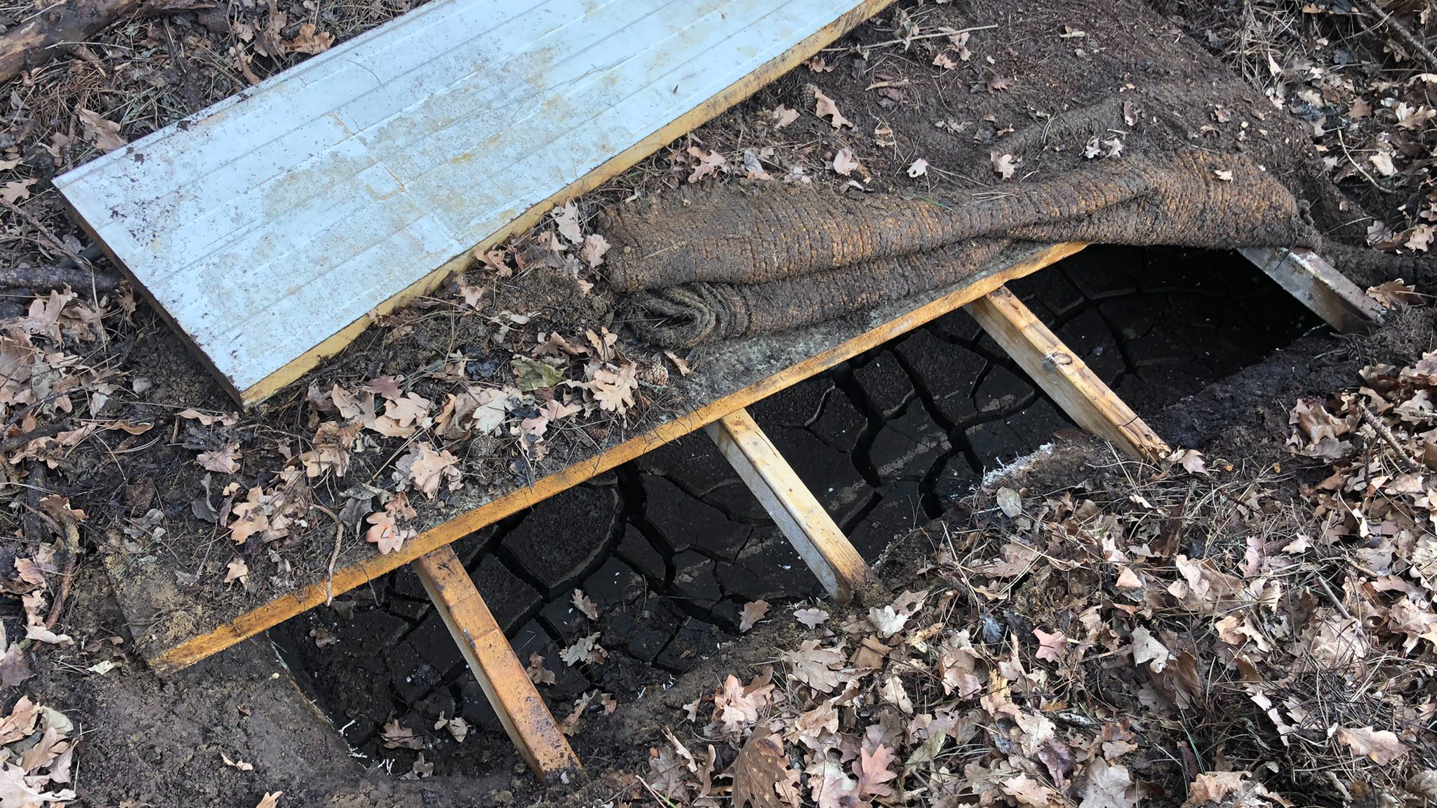 De drugsput werd half maart ontdekt in de heuvel van een bos, in het uiterste westen van Brabant. Het gat in de grond was gecamoufleerd om ontdekking vanuit de lucht te voorkomen. Experts namen diverse monsters.