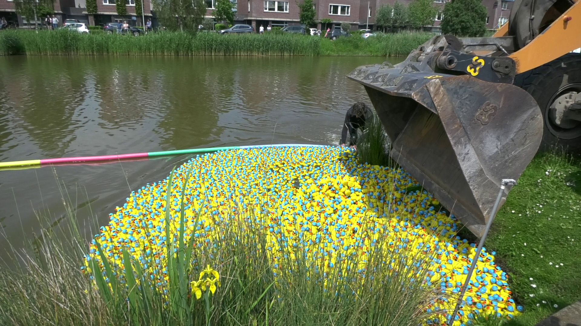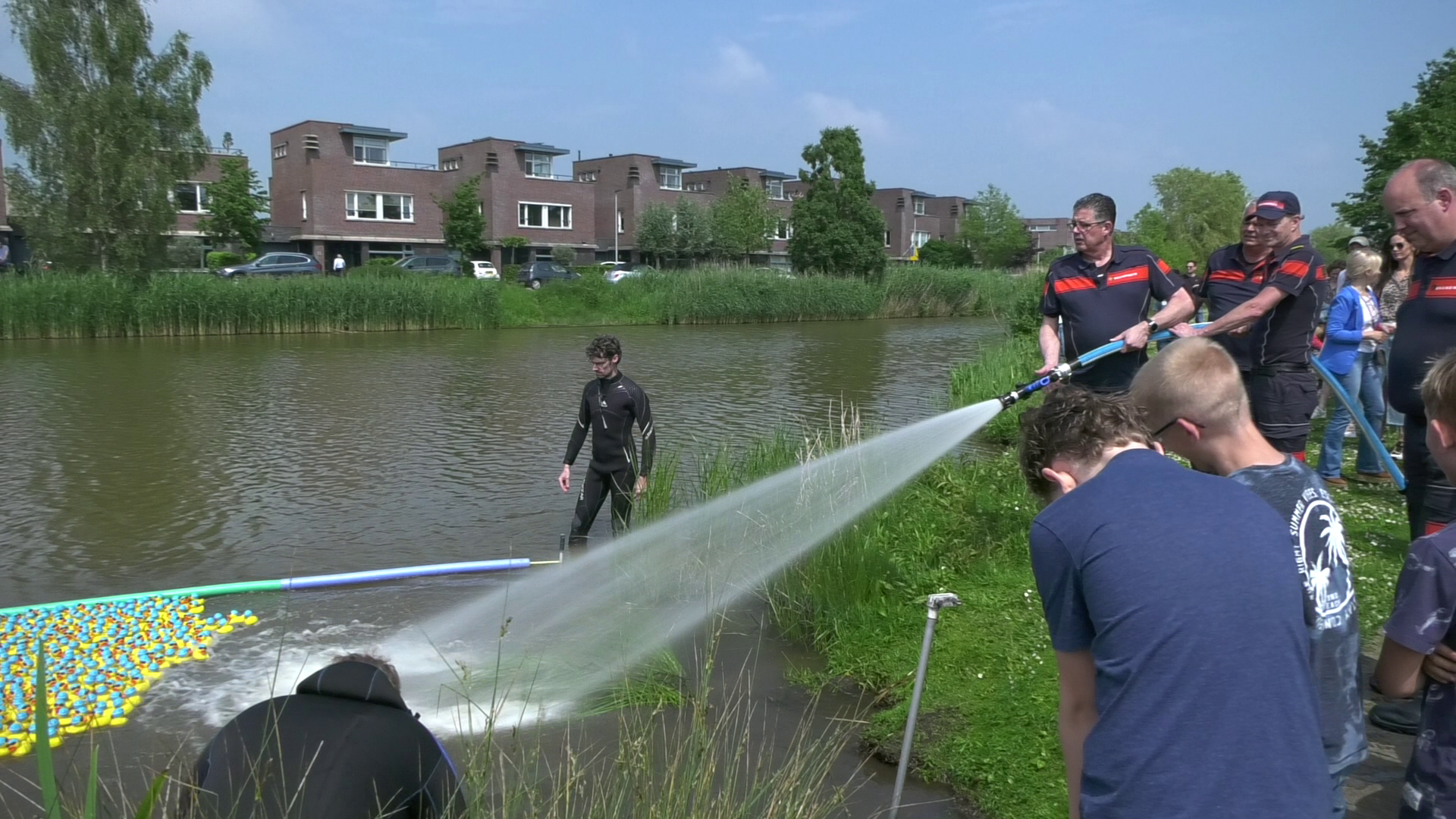 Om 14.30 uur was het startschot in het Schoenmakerspark te horen. “We tellen af naar het moment dat alle eendjes te water worden gelaten. De sirenes van de brandweer zijn dan te horen als startteken”, vertelt Van Peer. Met behulp van een brandweerspuit en twee duikers in het water zijn de eendjes naar de overkant geholpen.