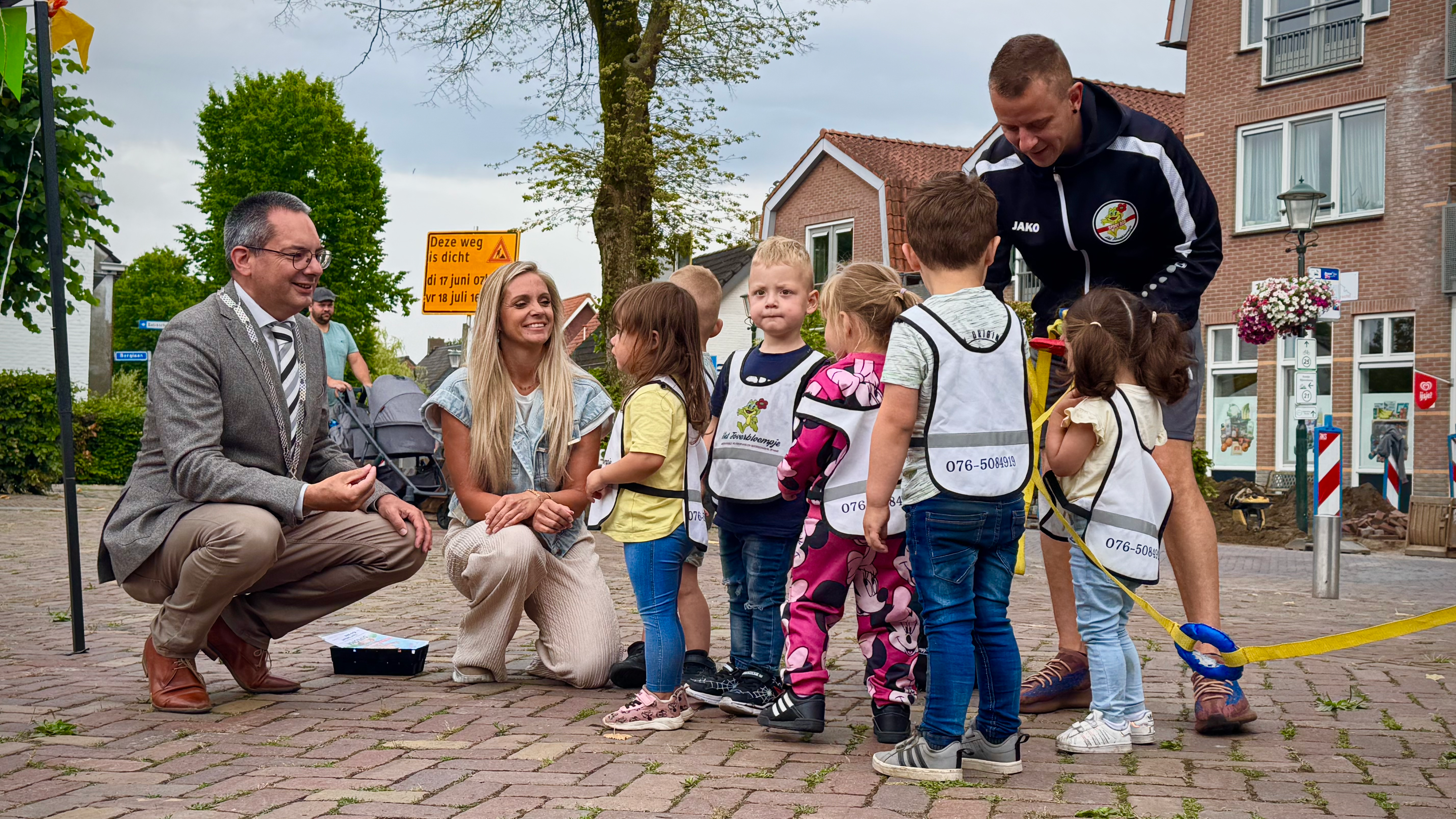 Een bijzonder schattig beeld speelde zich donderdagochtend af in Woensdrecht. Daar kregen tien peuters van kinderopvang Het Toverbloempje hun peutervierdaagsemedaille. De hele week hebben de kinderen elke dag een ronde van een kwartier gelopen. Samen met de burgemeester werd de laatste dag gevierd.
