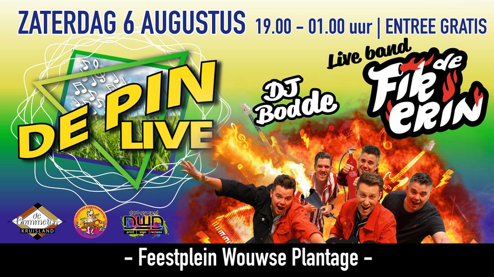 De Pin Live vindt plaats middenin het hart van Wouwse Plantage, naast het kermisterrein. “De Brabantse feestband De Fik Erin komt optreden”, vervolgt Erik. “Iedereen die langs wil komen is welkom”, vervolgt Erik. “Het is lekker in de buitenlucht. De weersvoorspellingen zijn goed. Er komt een leuke band. Alle ingrediënten voor een mooie avond denk ik zo.”