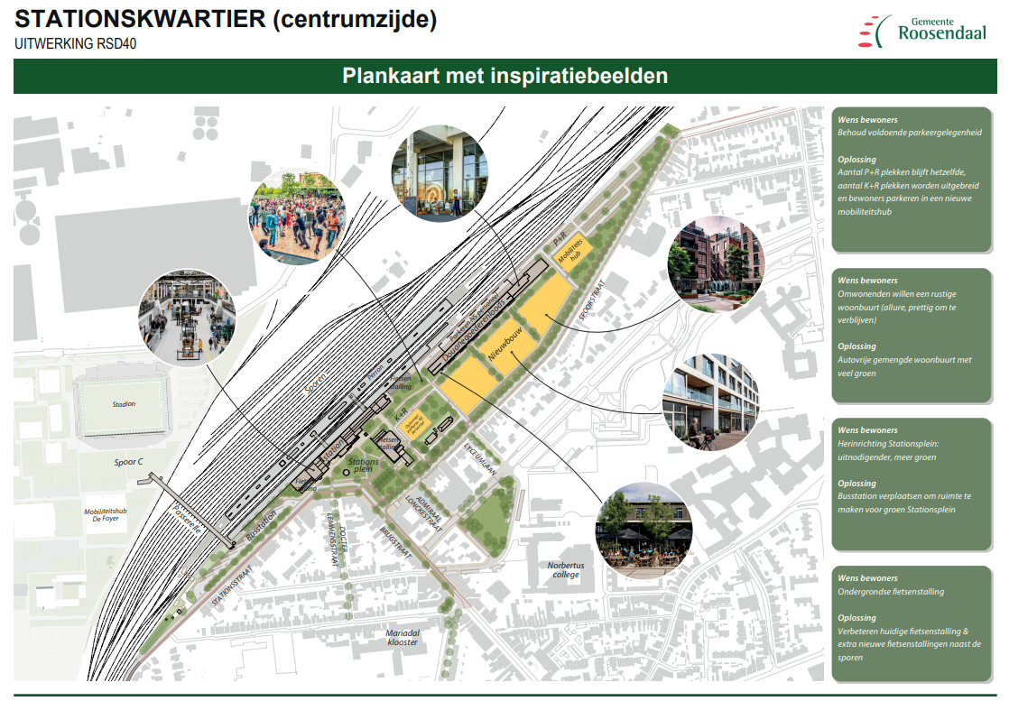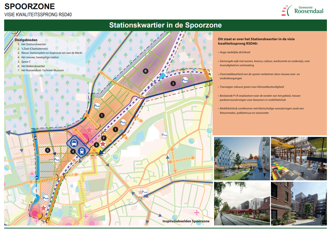 In de visie valt verder terug te zien dat de gemeente Roosendaal de oversteekbaarheid van de sporen wil verbeteren door nieuwe over- en onderdoorgangen te realiseren. Ook wordt er geluisterd naar de wensen van de omwonenden. Zo komt er een speciale mobiliteitshub aan de rand van het gebied waar bewoners rondom het station kunnen parkeren. Daarnaast willen de omwonenden een rustigere woonbuurt en een uitnodigender Stationsplein. In de plannen staat daarom dat de woonbuurt autovrij wordt en dat het busstation verplaatst zal worden tot naast de fietsenstalling. Zo is er ruimte voor meer groen bij het Stationsplein.