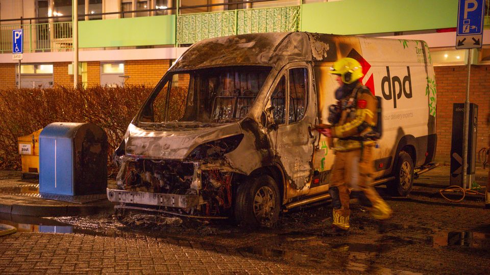 Elektrische bestelbus brandt grotendeels uit, waarschijnlijk door vuurwerk