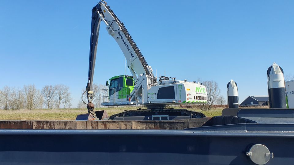 Een recent voorbeeld van emissieloos werken in de regio: het baggeren op het Mark-Dintelkanaal. (Foto: Waterschap Brabantse Delta)