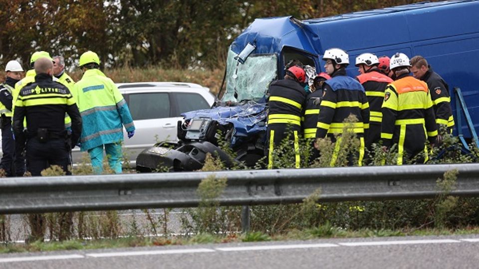 Ernstig ongeluk op A58 bij Roosendaal: bestelbus klapt op vrachtwagen
