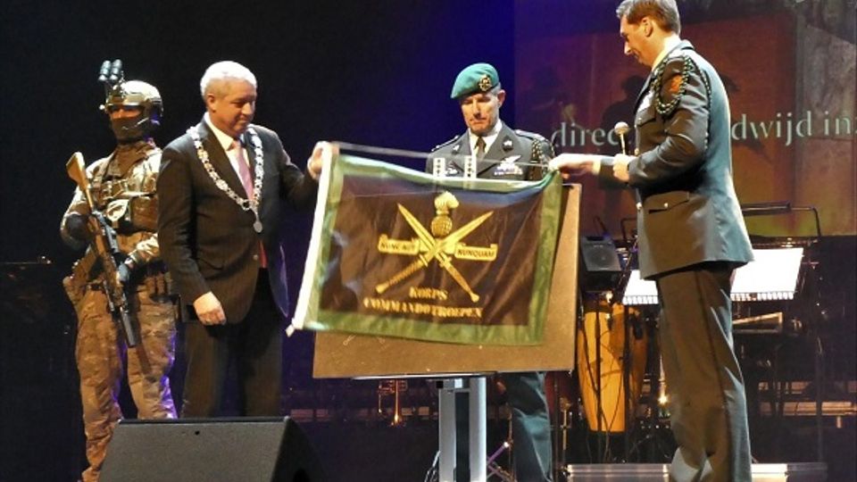 Aan het begin van de avond was er een bijzondere verassing. Het Korps Commando Troepen heeft een plaquette aangeboden aan de stad en haar inwoners. Dit om de jarenlange vriendschap tussen Roosendaal en het korps te vieren.
