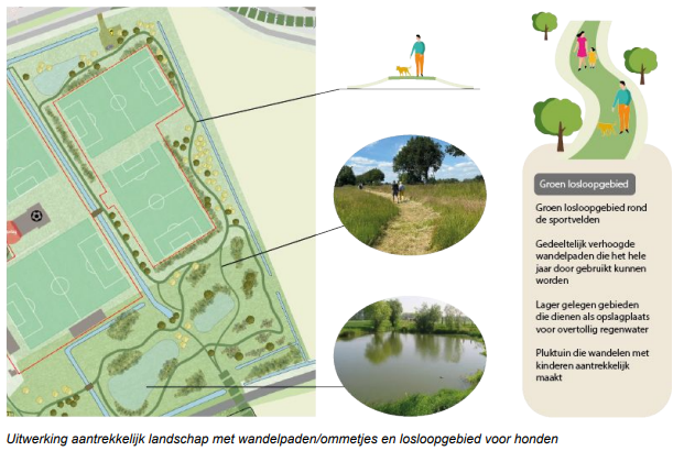 Het sportpark ontvangt wekelijks zo’n duizend bezoekers, weet wethouder Thomas Melisse te vertellen. “Mede daarom willen we graag dat het park meer wordt dan een verzamelplek voor verenigingen.” Als voorbeeld noemt de wethouder mensen die met hun hond door het park wandelen. “Daarvoor willen we een hondenlosloopgebied creëren. Maar we zien dit zeker ook als kans om het park in te bedden in de omgeving. Om het groener te maken.”