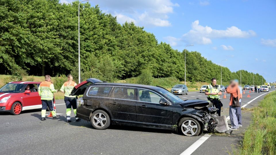 Flinke verkeersopstopping A58 nadat auto tegen vangrail rijdt