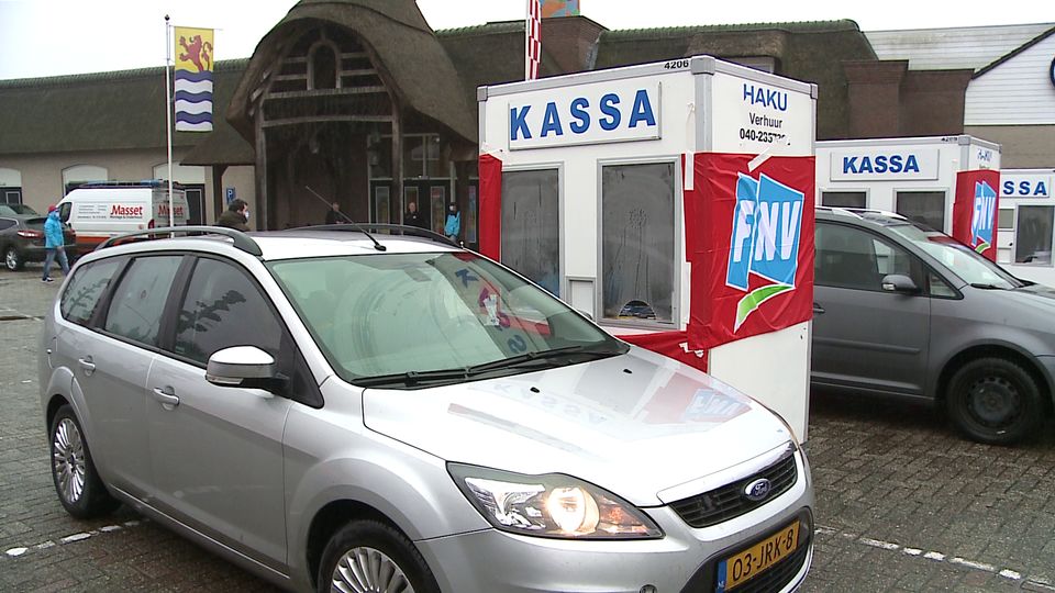 Op het parkeerterrein is met pylonnen een heuse staakstraat afgezet. ,,Vanwege het coronavirus moet het zo sober mogelijk en moeten contacten vermeden worden. We moeten zo ver mogelijk uit elkaar blijven, vandaar die staakstraat”, aldus Meeder.