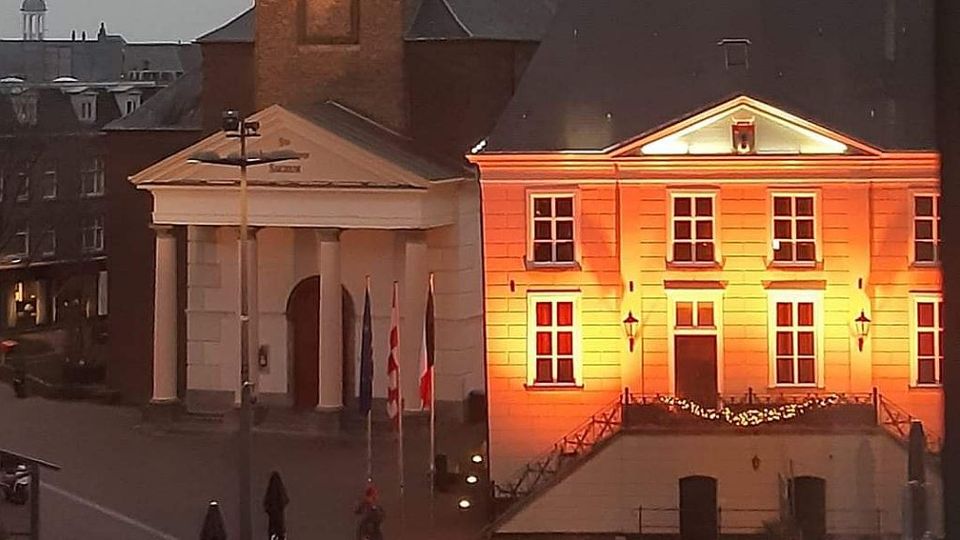 Het raadhuis in Roosendaal kleurt sinds donderdagavond oranje (foto: gemeente Roosendaal).