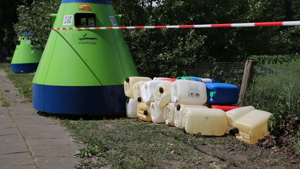 Vermoedelijk zijn de vaten leeg. Het is niet duidelijk wat er precies in de vaten heeft gezeten. Uit voorzorg is er een lint rond de vaten gespannen.