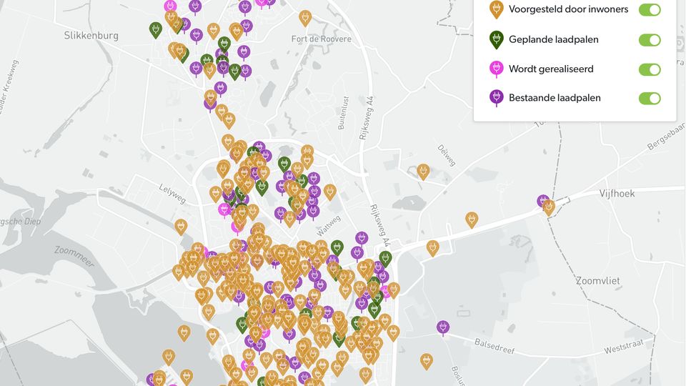 Dat wil Bergen op Zoom ook graag. “De gemeente vindt het belangrijk dat deze locaties aansluiten bij de wensen van de inwoners. Daarom biedt zij de mogelijkheid om mee te denken,” aldus de gemeente. Ze heeft EVT Tools een interactieve kaart laten maken. Het is een kaart die meteen verandert als iemand iets toevoegt. Je kunt het dus zien als iemand anders al een laadpaal heeft aangevraagd voor jouw favoriete plek. Dat voorkomt dubbele aanvragen.