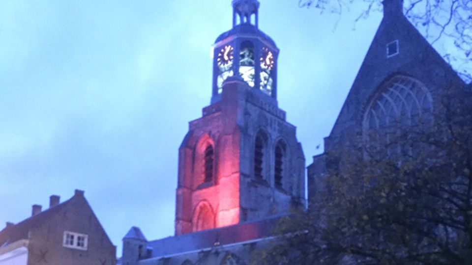 Ook de Gertrudiskerk in Bergen op Zoom wordt rood verlicht tijdens #RedWednesday
