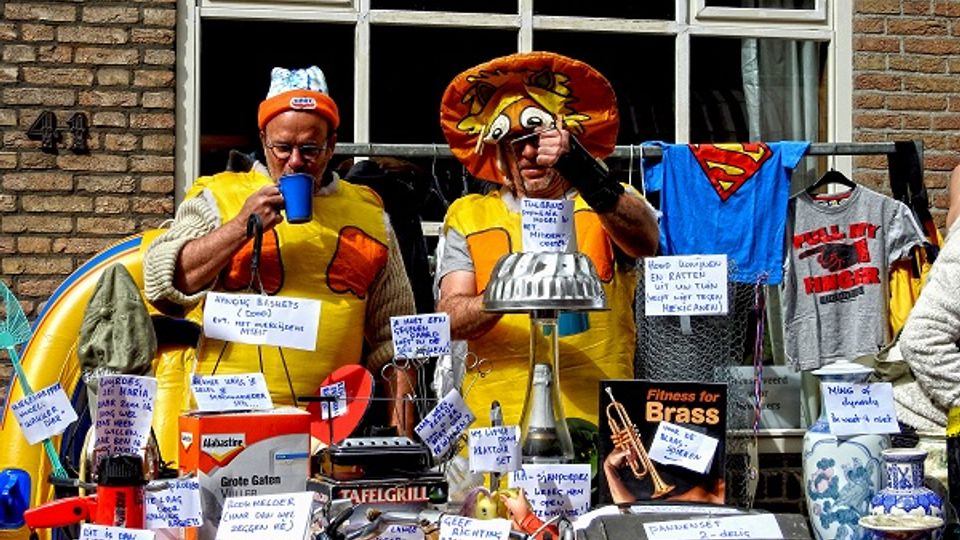 Koningsdag was koud dit jaar. Tussen de buien door kwam zo nu en dan het zonnetje tevoorschijn. Maar het slechte weer hield de bezoekers van de vrijmarkt in Bergen op Zoom niet tegen.