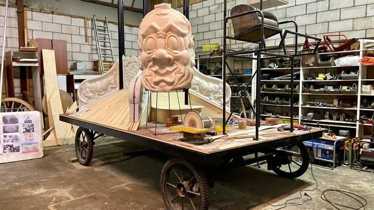 Ook ’t Krabbegat moet het dit jaar nog stellen zonder optocht. Toch is er volop activiteit in Halwana, het wagenbouwterrein in de stad. Hier wordt al maanden gewerkt aan een remake van ‘de gouden koets’ van de vastenavend: ’t Ezelskarreke.