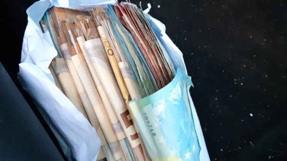 Veel cash in een envelopje (foto: Verkeerspolitie Zeeland-West-Brabant)