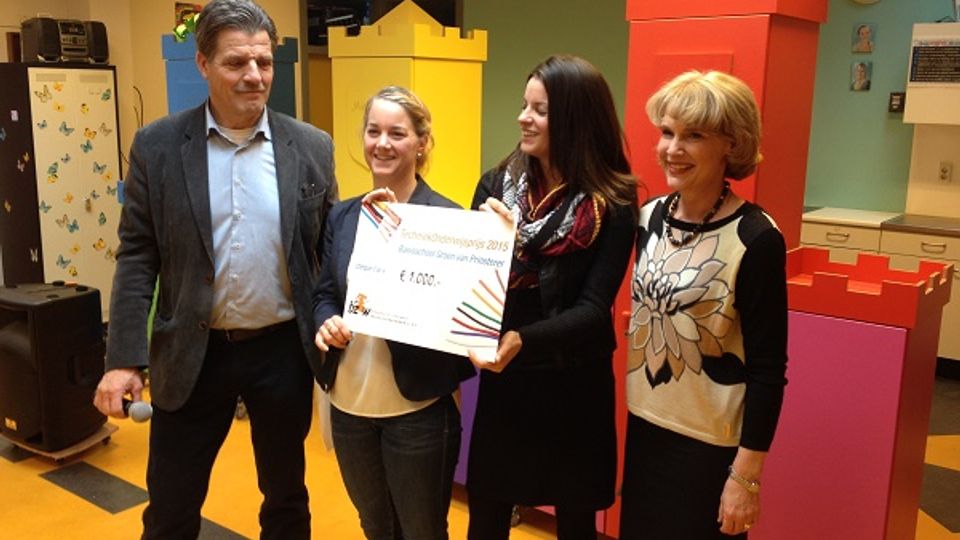 Dinsdagmiddag werd de cheque uitgereikt door wethouder Cors Zijlmans van de gemeente Steenbergen aan de techniekleraressen van basisschool Groen van Prinsterer. Twee keer per week krijgen de leerlingen van de basisschool techniekles en worden daar enthousiast gemaakt door juf Astrid en juf Marije. De leerlingen waren ook erg blij met de cheque, die waarschijnlijk besteed gaat worden aan uitje met de school naar een technisch museum.