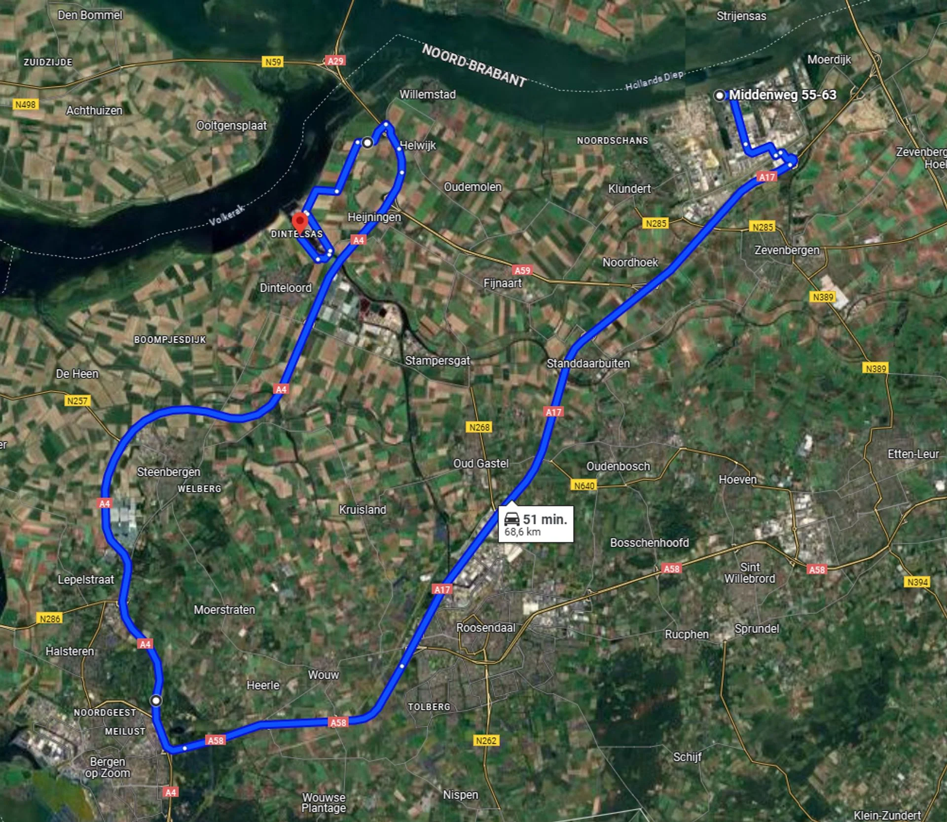 De route van bijna zeventig kilometer lang ging vanaf Moerdijk over de A17, A58 en A4 naar Dinteloord. Bij de A59 namen de voertuigen met de wiek afslag 23 naar de Karolinapolder.