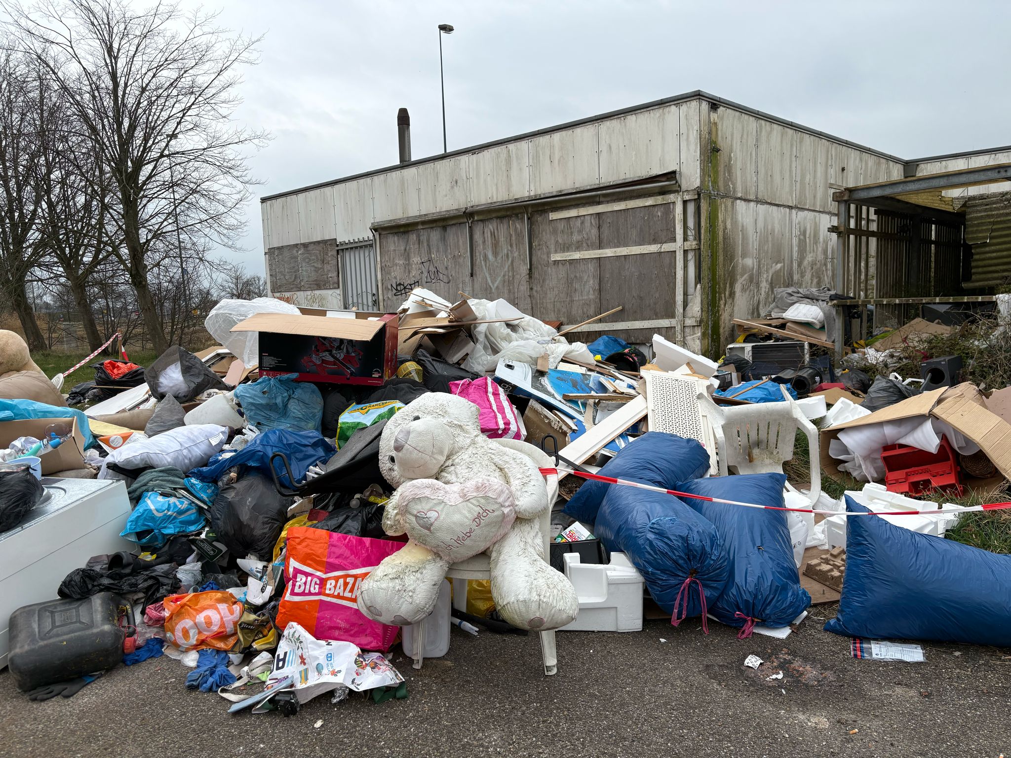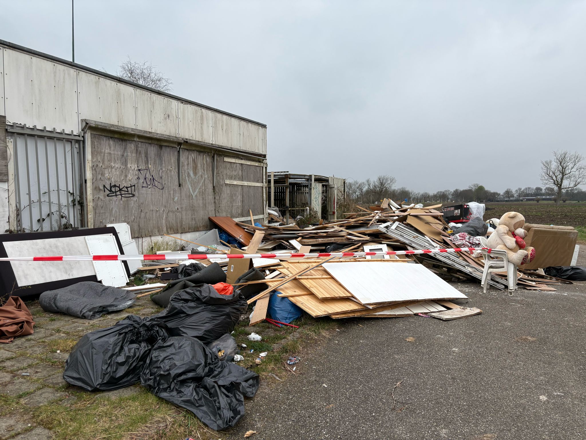 Op de plek waar de berg afval ligt, staat ook een gebouw met een schuurtje. Ook die schuur ligt vol met troep. Volgens Schillemans is er door de grote hoeveelheid afval een onveilige situatie ontstaan. “Aan de achterzijde van dat gebouw loopt nog een weg en die ligt voor meer dan driekwart bezaaid met rotzooi”, geeft hij aan. “Als er iemand in het donker over die weg rijdt is dat gevaarlijk.”