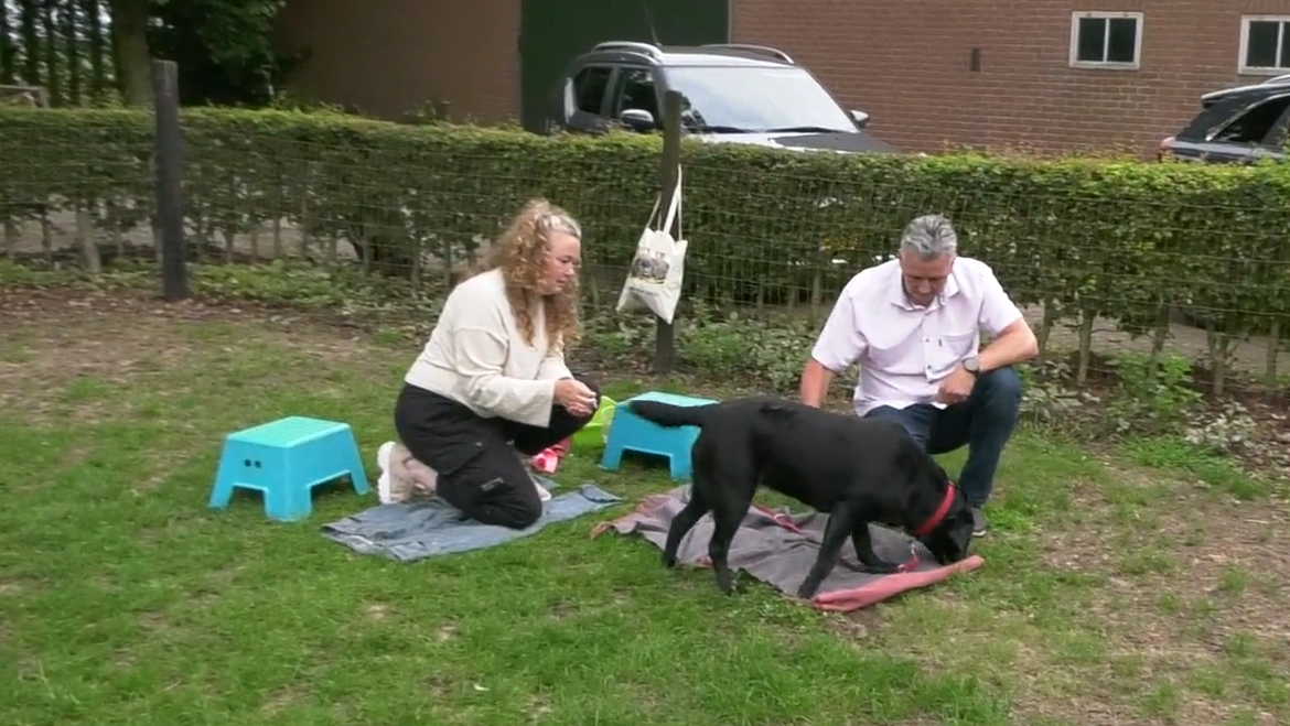 Voor onrustige en bewegelijke honden is er het ‘struinfestijn’. “Daar strooien we brokjes over de vloer, tussen wat voorwerpen of bijvoorbeeld een deken, en dan kunnen ze gaan snuffelen.” Een mooi voorbeeld van een hond die hier veel baat bij heeft is de Cavalier King Charles Spaniël, Elmo. “Elmo is heel onrustig, en vindt bij deze oefening echt zijn rust”, vertelt baasje Bianca van Overveld. “We oefenen dit ook thuis, en we merken echt verschil.”