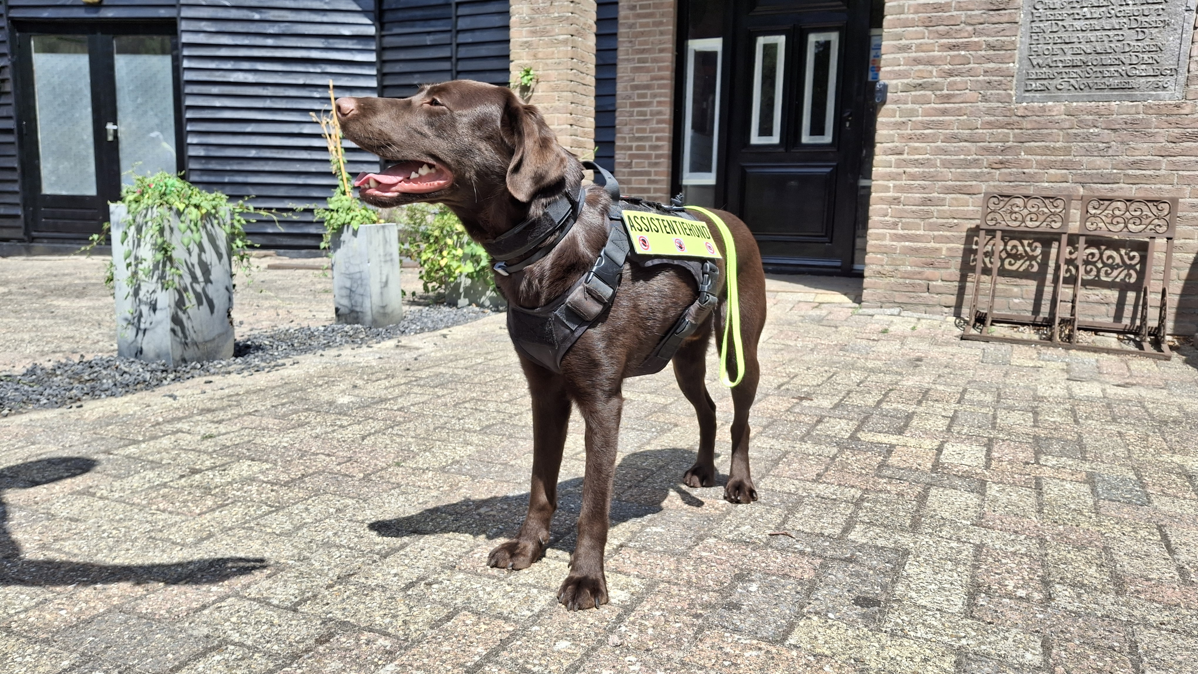 Daarbij begint hij met een interne training van ongeveer twee tot vier weken. “Het is vooral een stuk socialiseren dus winkels, supermarkten en ziekenhuizen in dat ze daar heel makkelijk naar binnen lopen”, legt Van Straten uit. De hond is daarbij gekoppeld aan een van de honden van Van Straten als maatje om te helpen tijdens de training. Daarna wordt de hond geplaatst bij een client en volgt er nog een training van ongeveer twee jaar. “Dan kan de client de hond al wel overal mee naartoe nemen.”