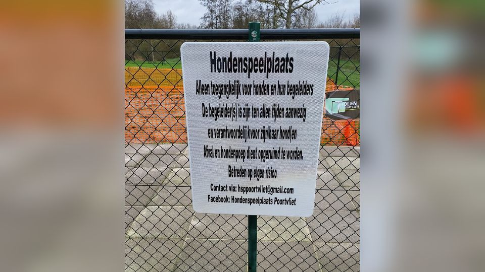En dus ontstond Honden Speelplaats Poortvliet, met behulp van een subsidie vanuit de gemeente, sponsoren en vrijwilligers. Het is een flink perceel dat volledig omheind is met een hek van 1 meter 80 hoog. Op het veld staan een aantal speeltoestellen voor honden. “De gemeente heeft ons echt enorm goed geholpen. John en ik hebben wat oude bankjes van de gemeente opgeknapt en daar weg gezet.” Ook is er een groot terras van ruim vijftig vierkante meter met daarop een picknicktafel en twee banken. Via het parkeerterrein van de voetbalvereniging heeft de gemeente een pad gecreëerd naar de ingang van het veld.