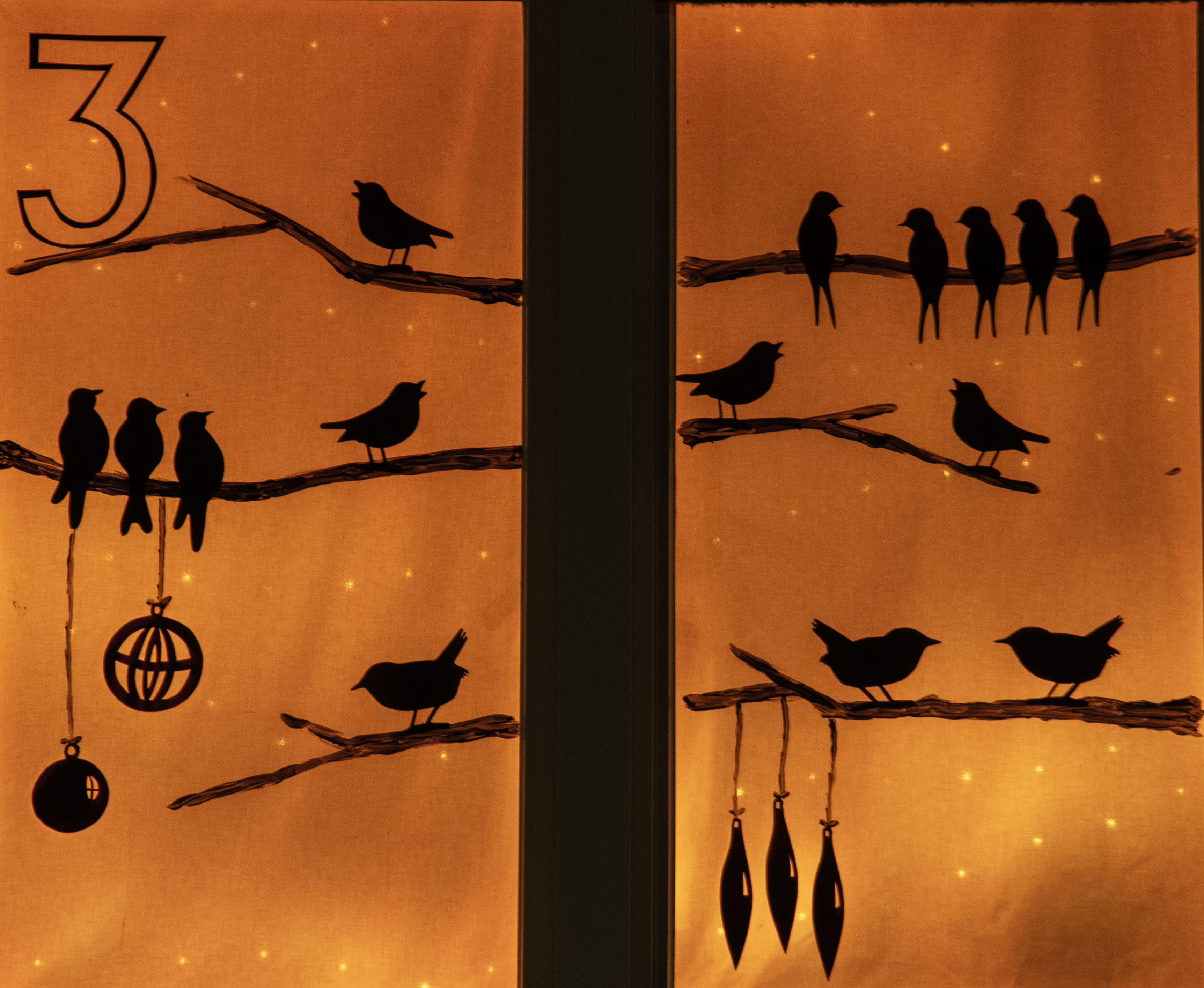 Naast een gedecoreerd raam, zijn bij dit adres ook echte vogelgeluiden te horen om het plaatje compleet te maken (foto: A. Uijtdehaag).