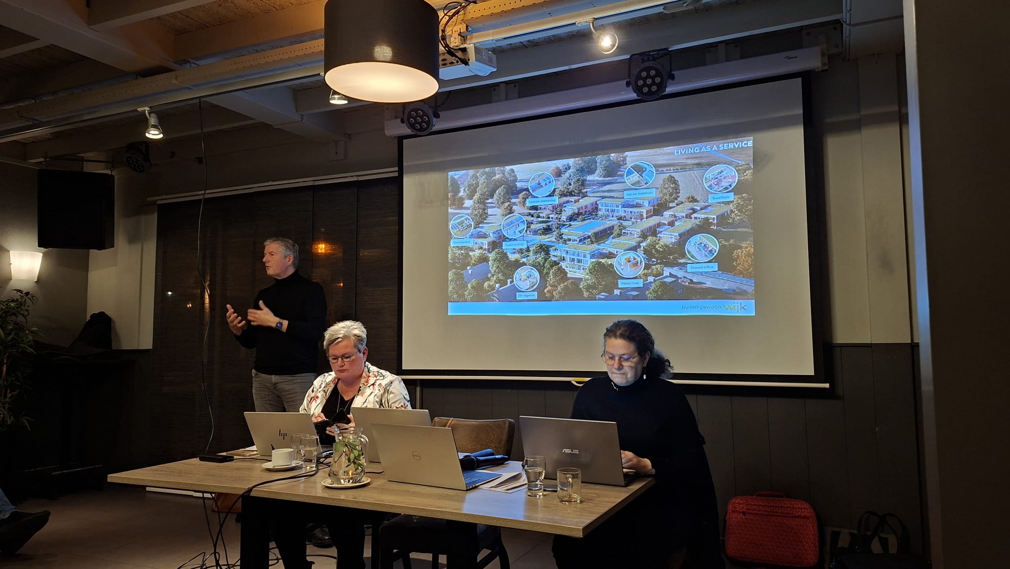 Zo krijgen de ongeveer vijftig aanwezige belangstellenden van de bijeenkomst van de Dorpstafel Fijnaart een eerste indruk hoe de nieuwe wijk eruit moet zien. In totaal gaat het om 95 huurwoningen die tijdelijk op agrarische grond aan de Appelaarseweg worden neergezet. “Die grond is op dit moment van ASR en krijgt dan tijdelijk een andere bestemming. Als alle onderzoeken zijn afgerond en de vergunningen er door zijn, mogen de woningen daar maximaal vijftien jaar staan”, legt De Wit uit. Naast woningen moet de wijk ook autoluw worden, staat er midden tussen de woningen een gemeenschappelijk gebouw en moet er zelfs ruimte komen voor een kas en een moestuin.
