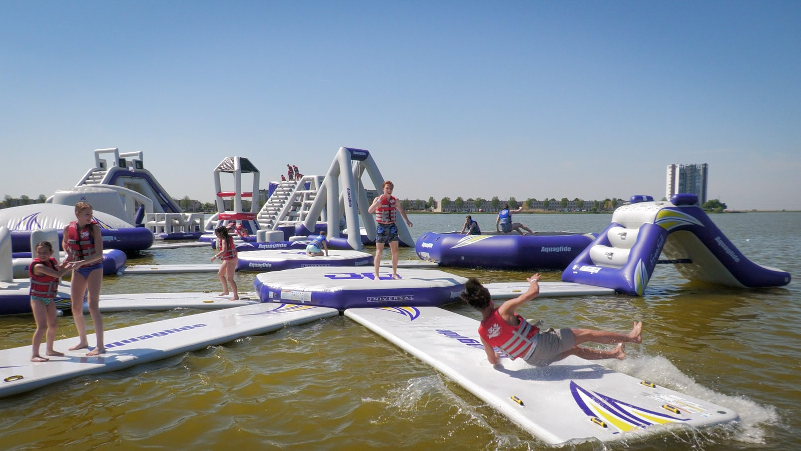 De grootste trekpleister van AKQA Beach is natuurlijk het aquapark, bestaande uit allerlei spannende waterattracties. “Na het aquapark in Zuid-Frankrijk zijn wij het grootste en meest uitdagende park in de regio, met een oppervlakte van ruim 3.500 vierkante meter — bijna een half voetbalveld. We kunnen tot 300 mensen per uur ontvangen. Daarnaast zijn onze sloepjes erg populair. We hebben er nu twee en volgende maand komt de derde. Ook zijn we aan het kijken naar uitbreiding van het aantal strandbedden, want op dagen zoals vandaag is alles volgeboekt.”
